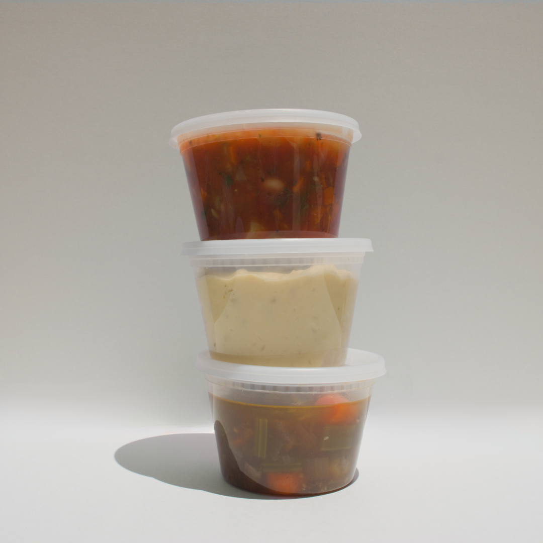 Reheat Instructions: Set the vented top lightly (Not Sealed) on the container and reheat in the microwave for 1 1/2 minutes. Stir soup and put back in the microwave with the top set lightly on the container for another minute.